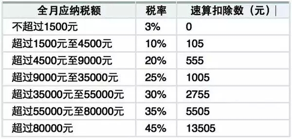 3、起征點(diǎn):自 2011 年起,起征點(diǎn)由 2000 元上調(diào)至 3500 元